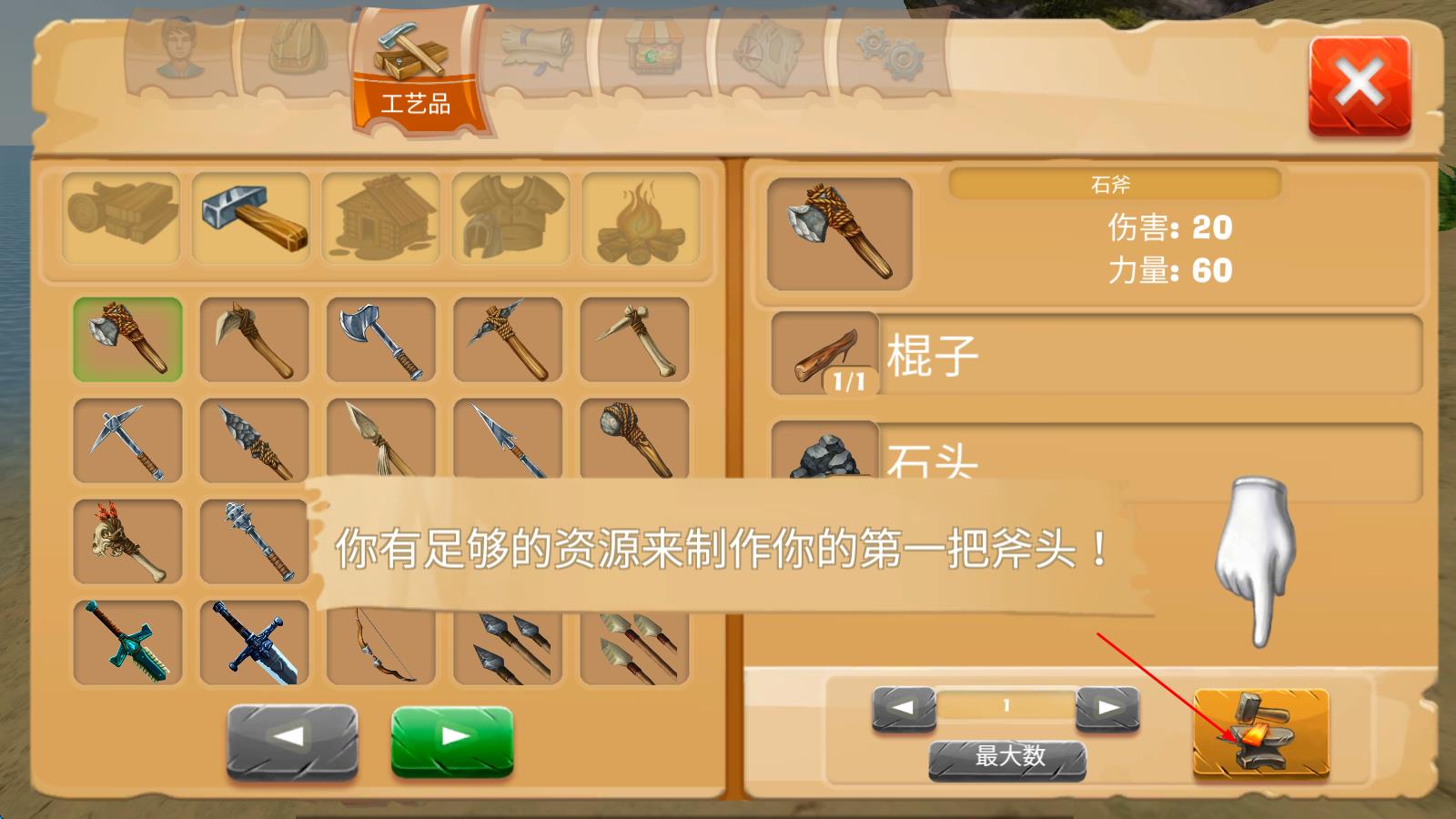 3、深度工藝系統(tǒng):物品制作無需等待讀條,且支持“材料鏈合成”如木材→木板→木箱→儲物箱,清晰的科技樹引導(dǎo)玩家從原始工具逐步解鎖火器。