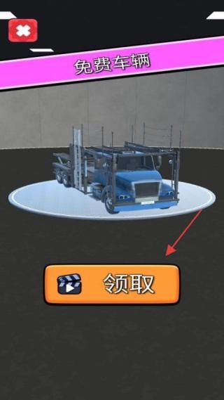 1、在【免費車輛】界面,點擊【領(lǐng)取】按鈕,觀看廣告后獲取藍(lán)色卡車,擴充車輛庫。
