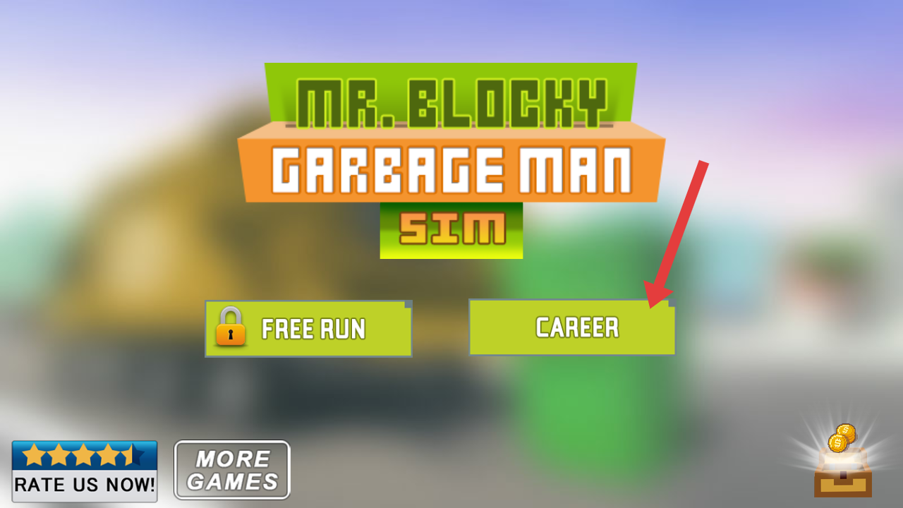 1、進(jìn)入像素城市垃圾車模擬的游戲主界面,點擊【CAREER】按鈕,開啟垃圾車司機(jī)的職業(yè)模式挑戰(zhàn)。