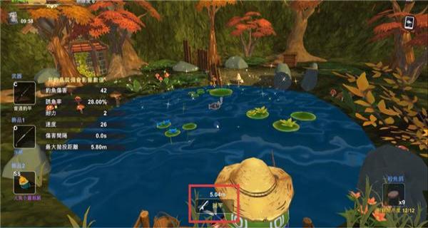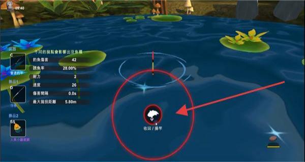 2、選擇你釣魚的拋竿點(diǎn)位,點(diǎn)擊拋竿按鈕,釣魚竿就會(huì)拋出魚線,之后就是耐心的等待了。