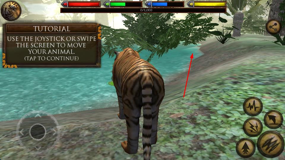 2、在叢林中自由活動,通過狩獵小型動物獲取食物,尋找水源補充體力,與同類互動完成繁殖等生存任務(wù)。