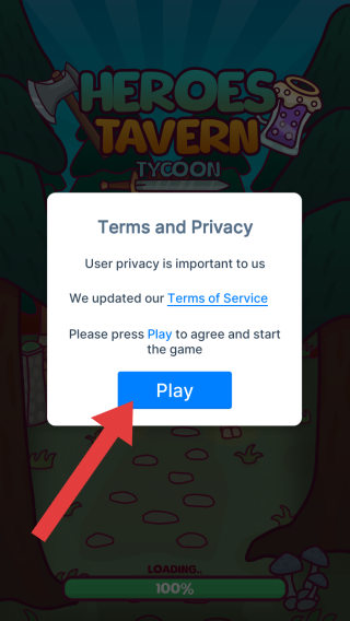 1、顯示“TermsandPrivacy”相關(guān)內(nèi)容,提示用戶(hù)點(diǎn)擊【Play】同意服務(wù)條款并開(kāi)始游戲。