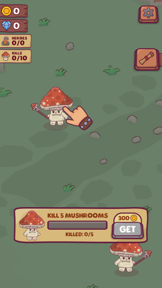 3、顯示任務(wù)KILL5MUSHROOMS(消滅5個(gè)蘑菇怪),當(dāng)前消滅數(shù)量“KILLED:0/5”,完成可獲300金幣,呈現(xiàn)戰(zhàn)斗任務(wù)環(huán)節(jié)。
