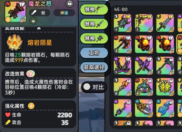 火系輸出核心:召喚25顆熔巖隕石,每顆造成919點傷害,范圍覆蓋廣,傷害高,是火系最強(qiáng)輸出武器,適合所有火屬性傷害角色。