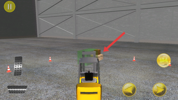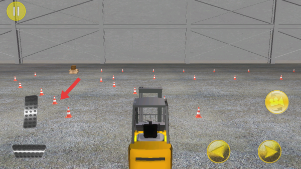 2、操控者需要操控叉車,借助左側(cè)的按鍵來進(jìn)行調(diào)整行進(jìn)方向,避讓場(chǎng)景內(nèi)的錐形障礙。