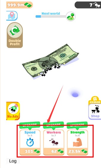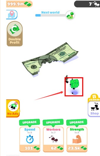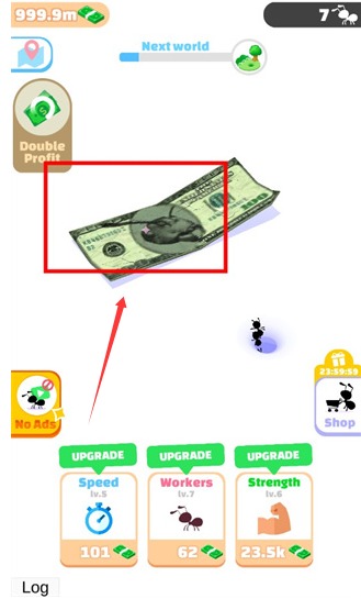 1、首先進(jìn)入游戲,可以看到螞蟻需要搬運(yùn)的物品,也可能是食物,這次的是鈔票。