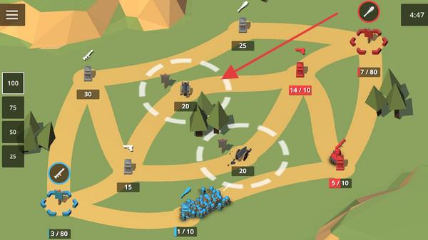 1、觀察路線、據(jù)點數(shù)值(如30、20),合理分配兵力,搶占據(jù)點,積累優(yōu)勢,推進(jìn)戰(zhàn)局。
