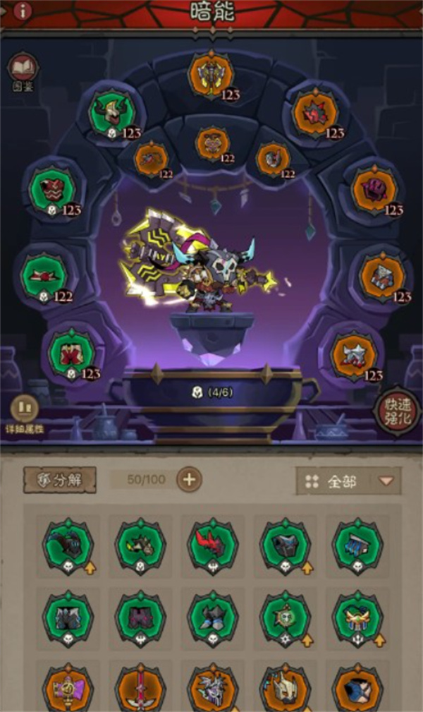 2、刷圖推薦"狂亂-橙色疊刺+踐踏-強(qiáng)勁+鋼鐵之膚-翻涌+狂戰(zhàn)之怒-橙色沖天"組合,裝備掉落率提升35%。