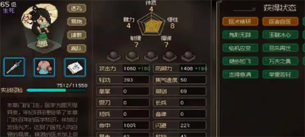2、資源管理要點:資源全投核心NPC送禮,屬性養(yǎng)成優(yōu)先強化戰(zhàn)斗關鍵維度(武力/悟性),保障進度集中角色成長節(jié)點(關系解鎖、技能學習)。