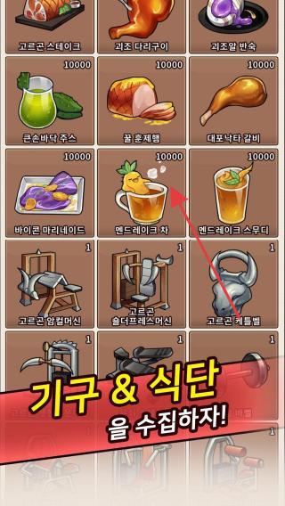 3、物資界面,有(收集器械和食譜)提示,展示各類物資(如??????等)及價格(10000),用于健身房運營配置。