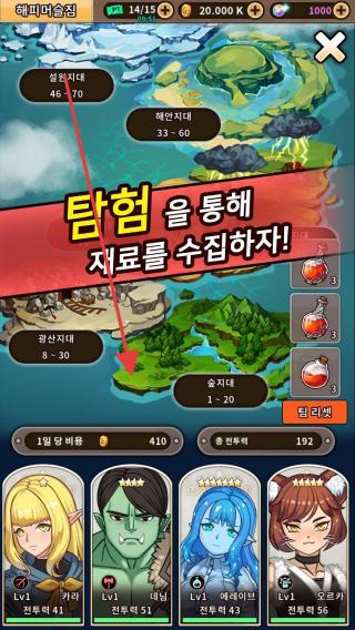 2、地圖界面,有不同區(qū)域),提示(通過探險收集資料),下方是可派遣的角色及戰(zhàn)力等信息,用于資源探索。