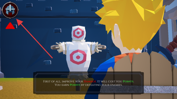 2、進(jìn)入訓(xùn)練場景,點(diǎn)擊左上角圖標(biāo),依據(jù)提示提升能力,擊敗敵人獲取點(diǎn)數(shù)。