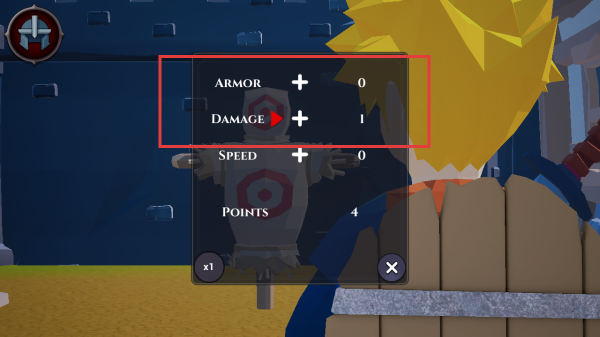 3、打開屬性面板,用點(diǎn)數(shù)加【DAMAGE】提升傷害,增強(qiáng)戰(zhàn)斗能力,推進(jìn)游戲進(jìn)程。