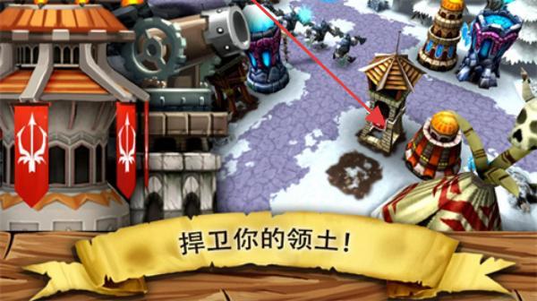 1、進(jìn)入游戲,在領(lǐng)地建造防御塔,依據(jù)地形布局,踐行【捍衛(wèi)你的領(lǐng)土!】,抵御敵人入侵。