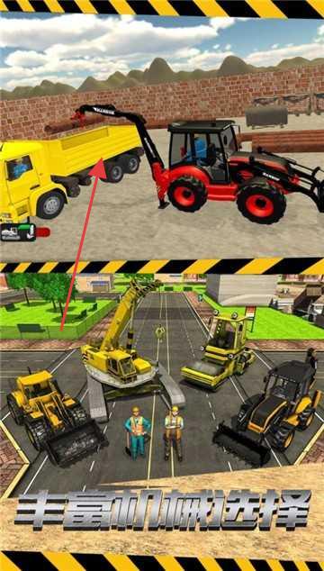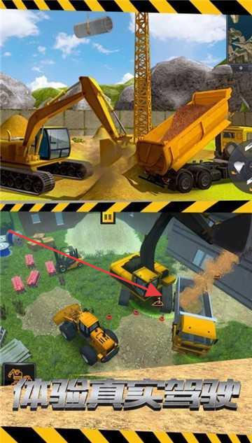 3、模擬真實(shí)駕駛手感,操控工程車協(xié)作,完成裝卸、運(yùn)輸?shù)攘鞒?,還原施工體驗(yàn)。