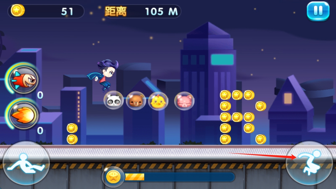 2、點擊跳躍,注意收集限時道具,可能用于合成稀有技能,利用每日登錄獎勵獲取免費金幣與加速解鎖。