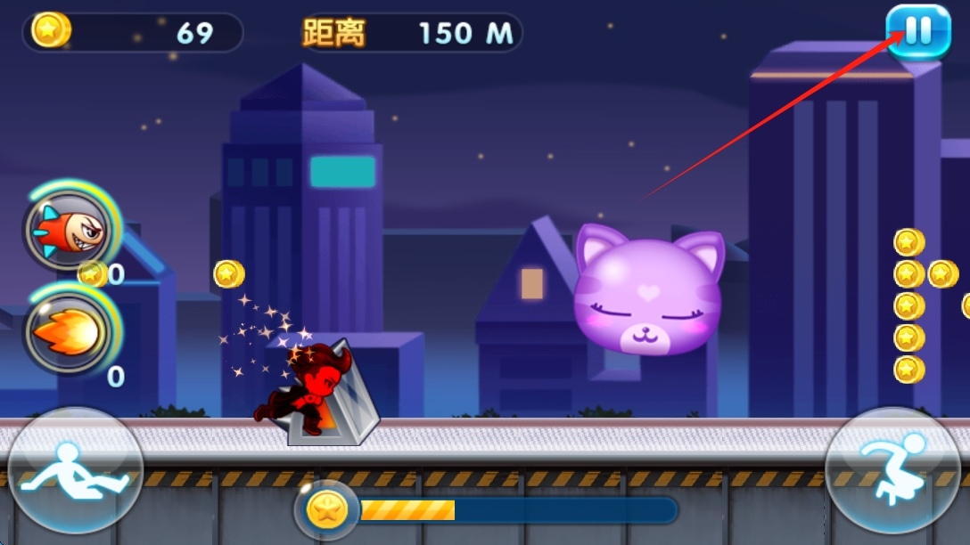 1、點擊開始,通過精準操作最大化得分倍率,利用連續(xù)完成高難度動作觸發(fā)"跑酷達人"狀態(tài),通過暫停功能調(diào)整策略與查看提示。
