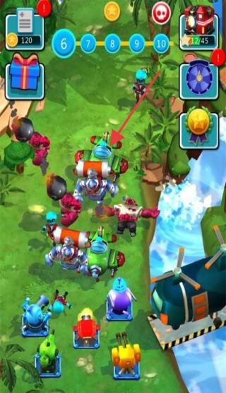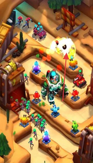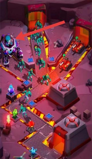2、釋放箭頭指向的火焰技能,配合大型機甲與小兵,集火攻擊敵方目標,同時保護己方建筑,穩(wěn)固防線,提升輸出效率。
