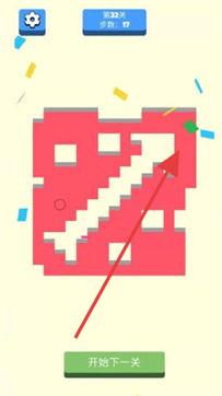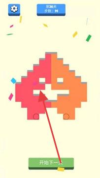 2、通過移動、旋轉(zhuǎn)方塊,將其填入對應空缺位置,完成圖形拼接,點擊“開始下一關(guān)”。