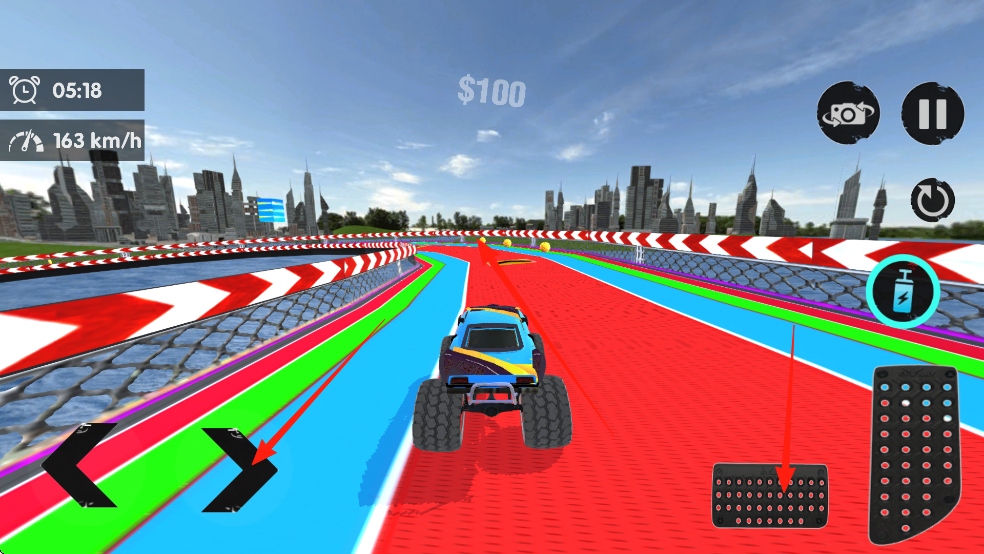 1、基礎(chǔ)操作體系:點(diǎn)擊屏幕控制加速與剎車,滑動(dòng)屏幕調(diào)整方向盤,長按屏幕觸發(fā)氮?dú)饧铀?,通過組合操作完成復(fù)雜特技任務(wù)操作簡單直觀,讓玩家專注策略規(guī)劃。
