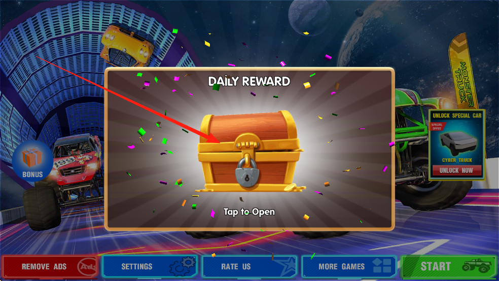 3、善用每日簽到與活動(dòng)獎(jiǎng)勵(lì),通過抽獎(jiǎng)獲取稀有改裝部件,完成成就任務(wù)解鎖隱藏賽道,打造專屬卡車風(fēng)格提升實(shí)力。