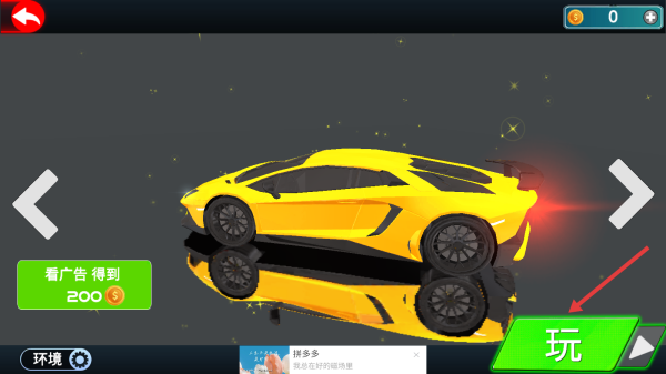 1、選黃色跑車(chē),點(diǎn)【玩】,消耗0金幣,進(jìn)入等級(jí)選擇界面。