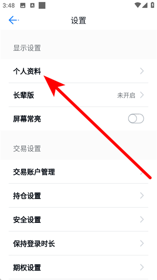 2、在設(shè)置的界面,需要點擊個人資料按鈕,進入個人資料的頁面。