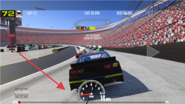 3、賽道競速時,關(guān)注下方【儀表盤】,控制車速與油門,靈活超車,沿跑道沖向終點(diǎn)爭取勝利。