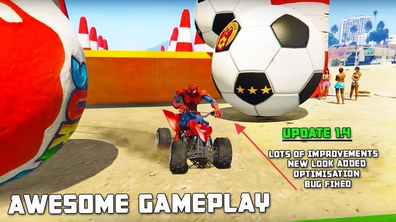 3、控制角色駕駛摩托,在沙灘場(chǎng)景,避開巨型足球,完成越野行駛。