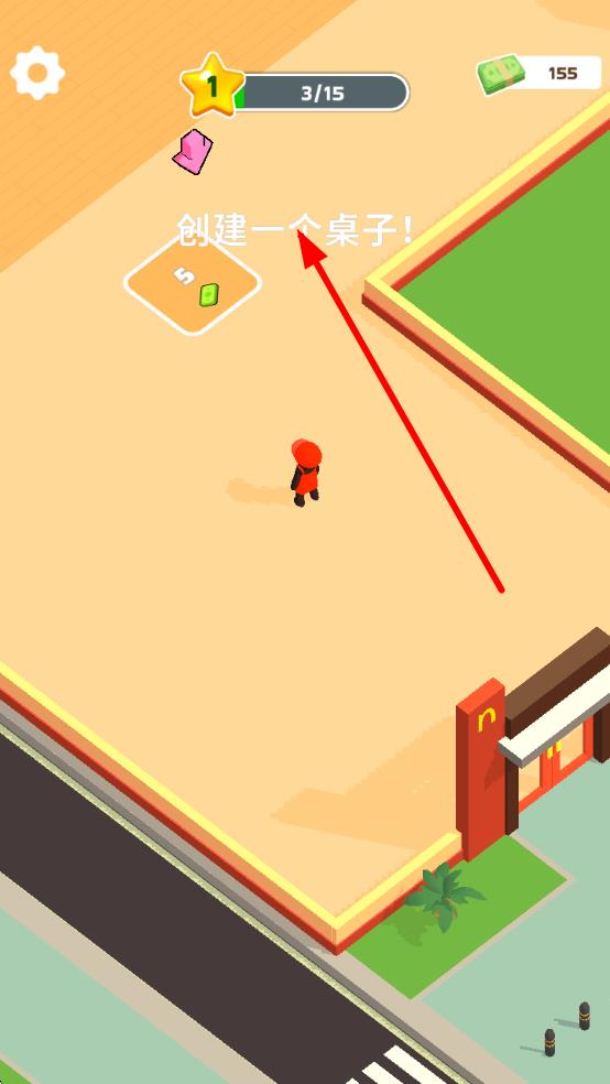 1、進入游戲,在初始場景按指引拾取貨幣,積累啟動資源,為飯店經(jīng)營籌備。
