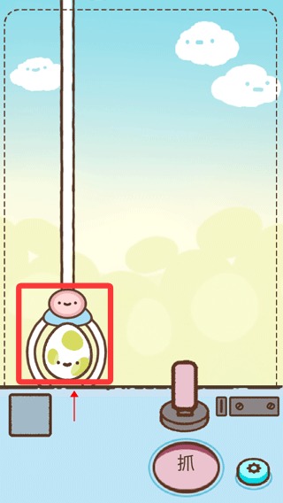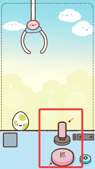 1、進(jìn)入游戲后首先就是按住上方的桿子移動最上方的爪子,當(dāng)移動到適合的位置時,點擊下面貼有“抓”這個文字的按鈕。
