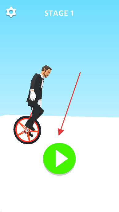 1、進入【STAGE 1】,點擊綠色播放按鈕,開啟獨輪車平衡挑戰(zhàn)。