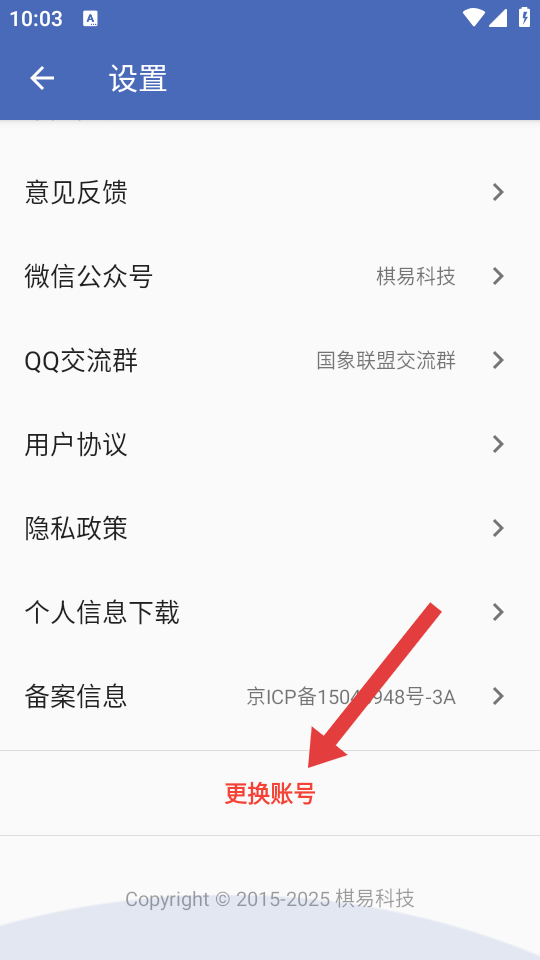 3、在設置的頁面,需要點擊更換賬號的選項,進入登錄的頁面。