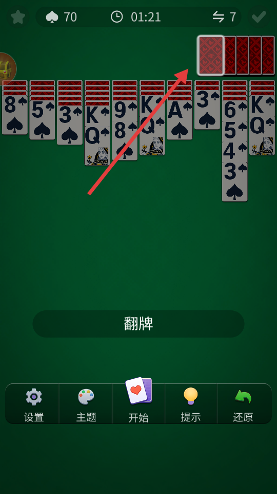 1、拖動(dòng)同花色紙牌按K到A順序排列,整組消除后才能解鎖新牌堆。