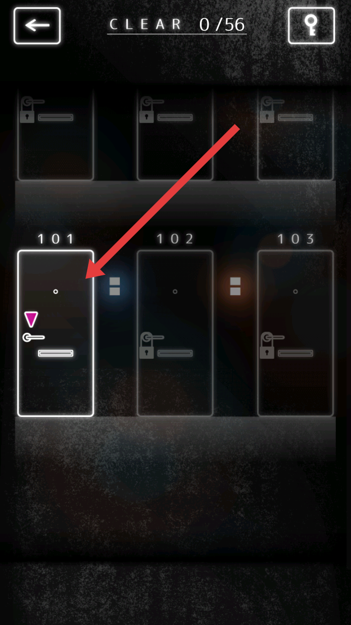 2、在游戲房間的列表中,需要選擇箭頭指向的【101號(hào)室】(未鎖狀態(tài)),進(jìn)入該房間展開解謎。