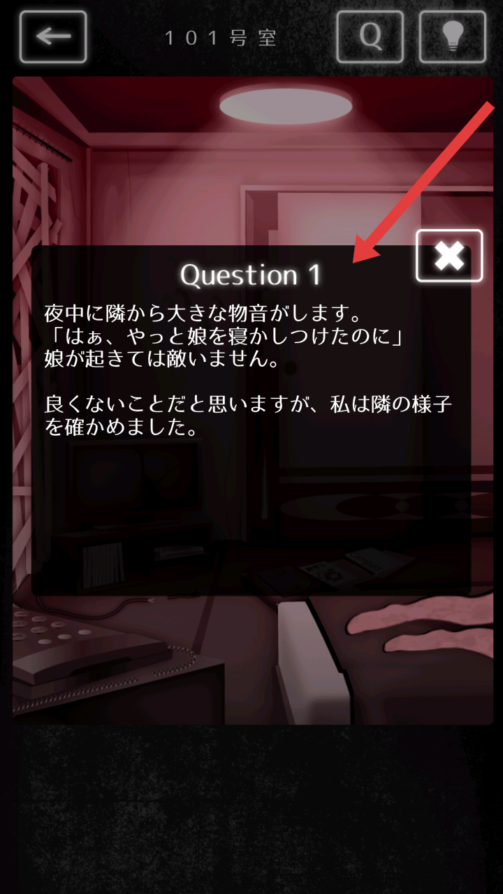 3、進(jìn)入101號(hào)室后,需要閱讀【Question1】的日文情境描述,梳理信息以推進(jìn)后續(xù)解謎。