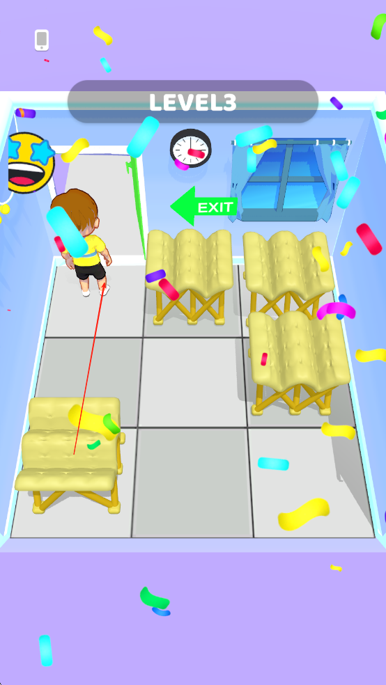3、在場(chǎng)景中收集鑰匙道具解鎖房門,部分關(guān)卡設(shè)置限時(shí)挑戰(zhàn),需在時(shí)間耗盡前完成折疊床的路徑規(guī)劃與障礙突破。