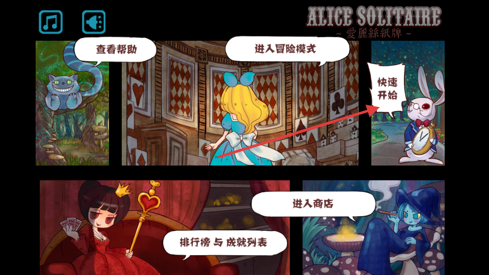 3、音畫合奏:背景音樂藏著八音盒版小星星變奏曲,卡牌移動時有羽毛筆劃過羊皮紙的沙沙聲,通關(guān)時還能聽見愛麗絲的經(jīng)典臺詞。