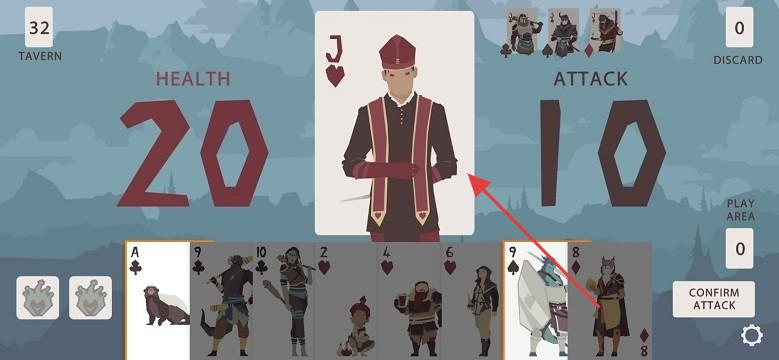 1、查看敵方卡牌攻擊與血量,選己方角色牌,點(diǎn)擊確認(rèn)攻擊,消耗敵方血量。
