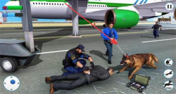 2、發(fā)現(xiàn)嫌犯后,在飛機(jī)坪場景,指揮警察與警犬配合,快速控制(如按壓嫌犯),利用警犬威懾,完成抓捕,防止危險擴(kuò)散。