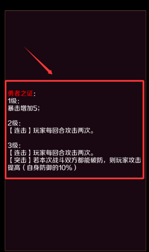 2、查看勇者之證技能說明,了解暴擊和連擊效果。