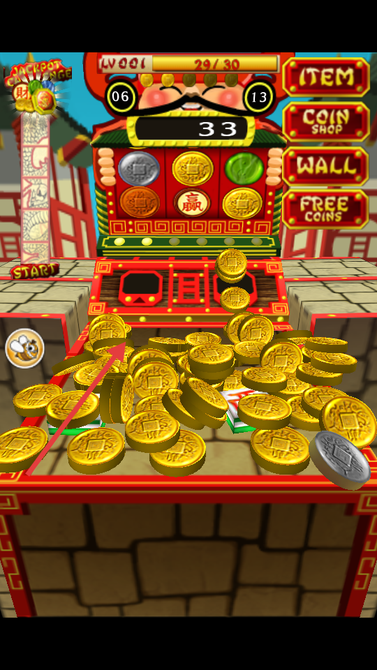 1、瞄準財神爺大腿瘋狂輸出金幣,掉進紅洞就能激活水果盤抽獎。