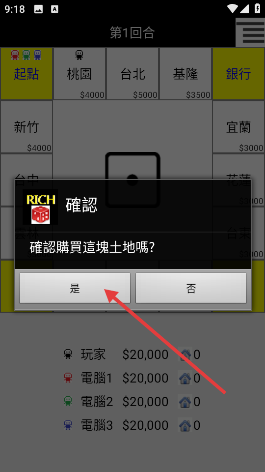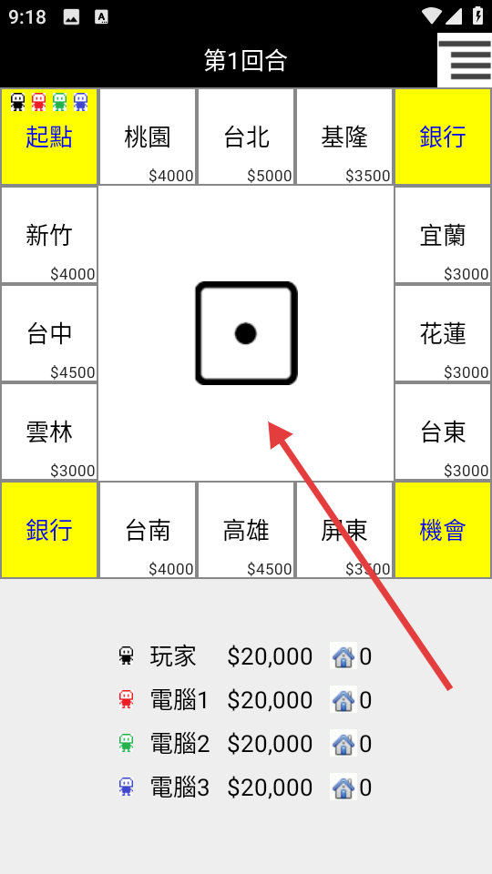 1、打開游戲直接玩,選好角色擲骰子決定步數(shù),踩中空地就能插旗當(dāng)包租公。