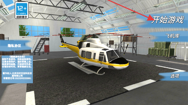1、進(jìn)入游戲初始界面,點(diǎn)擊【開始游戲】按鈕,開啟直升機(jī)模擬體驗(yàn)。