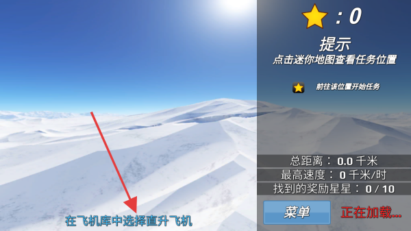 3、加載場景后,按提示【在飛機(jī)庫中選擇直升飛機(jī)】,準(zhǔn)備執(zhí)行飛行任務(wù)。