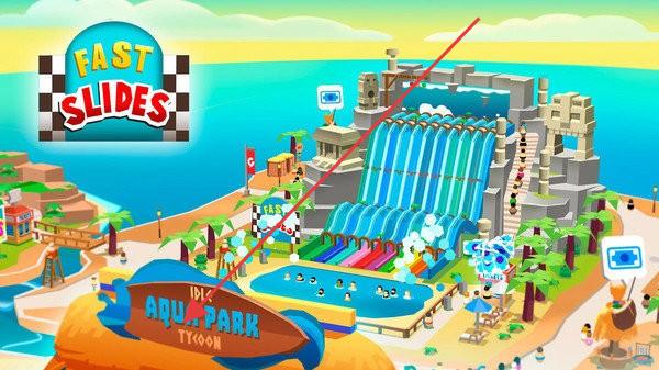 1、先“園區(qū)初建”!選定“FAST SLIDES”水上園區(qū),3秒放置游樂設(shè)施,別留空白地塊,每擺放1個(gè)滑梯,獲取100金幣。