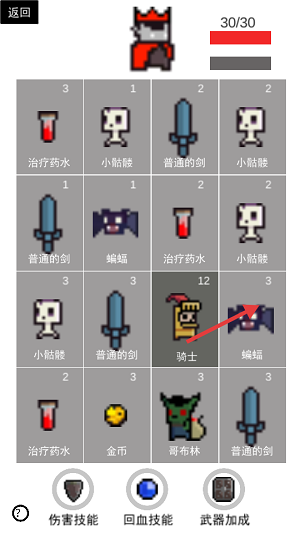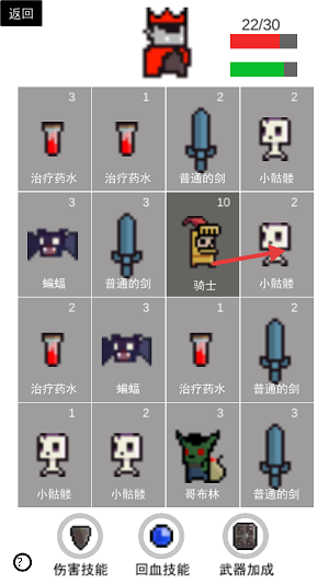 4、養(yǎng)成自由:三個(gè)裝備槽隨意混搭,給骷髏王裝備治療卡牌就能看到骨頭架子邊奶人邊罵娘的奇幻畫面。