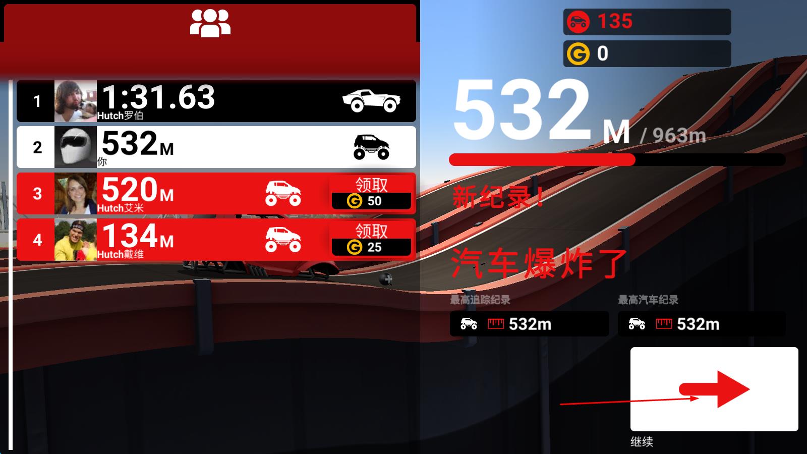 3、PVP競技玩法:支持與好友進行快速PVP比賽,在陡峭路徑上比拼駕駛技巧,看誰能行駛更遠,增添游戲互動性。