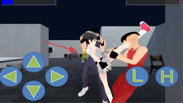 1、操作機制用虛擬按鍵(方向鍵+L輕擊、H重?fù)簦?,控制角色(白衣短發(fā)),組合出招,對抗敵人。