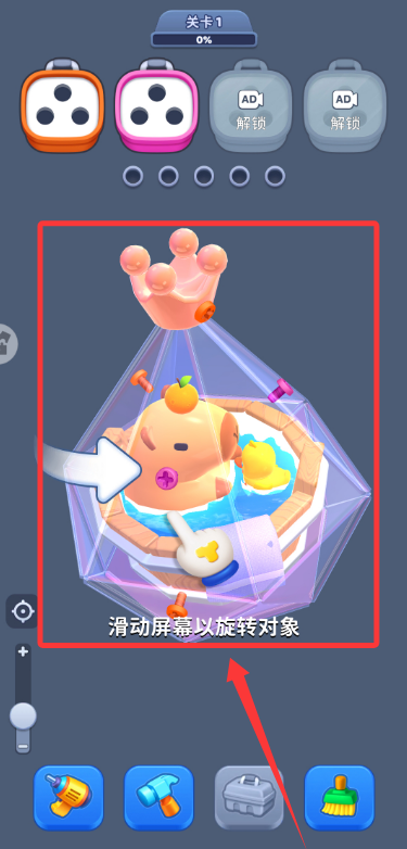 1、進(jìn)入游戲后,通過(guò)手指滑動(dòng)旋轉(zhuǎn)機(jī)械部件,精準(zhǔn)拆解螺絲完成每個(gè)關(guān)卡的拆卸任務(wù)。